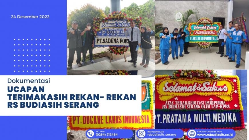 Ucapan Selamat Dari Rekanan RS Budiasih Serang Rabu, 28 Desember 2022 - 11:39:25 WIB | Oleh Khairul Latif | Komentar: | Kategori: Kegiatan RS Budiasih